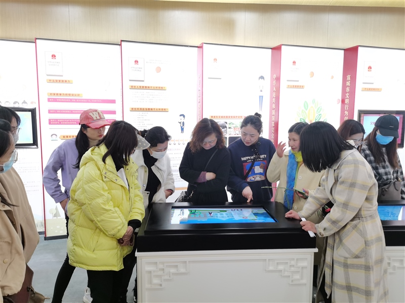 隨后,“娘子軍”們前往宣城宛陵湖法治文化館參觀。大家認真聆聽講解員的講解,依次參觀了“尊法學法”“守法用法”“普法路上”三個展區(qū),現(xiàn)場學習了法治文化,觀看了宣城市普法宣傳片和法治故事短片,體驗了法治模擬場景。通過參觀學習,進一步增強了她們尊法學法守法用法意識,將法治觀念融入今后工作和生活中,做到廉潔從業(yè),依法履職。