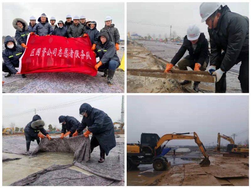2月2日,農(nóng)歷大年初二,雨雪交加。區(qū)國資集團(tuán)黨員突擊隊、志愿者服務(wù)隊前往疫情防控隔離點協(xié)助搬運材料、清理廢渣、鋪設(shè)防凍布等,項目現(xiàn)場一派繁忙景象。下午項目建設(shè)組開始布置班組,明日正式開始準(zhǔn)備區(qū)折疊房吊裝施工,確保春節(jié)期間施工組織有條不紊,有序推進(jìn)。