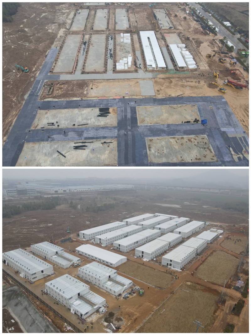 自1月21日宣州區(qū)疫情防控指揮部緊急部署由區(qū)國資集團(tuán)承建宣州區(qū)疫情防控臨時(shí)隔離點(diǎn)項(xiàng)目始,集團(tuán)即刻投入到緊張有序的搶建工作中。冬季施工難度相當(dāng)大,項(xiàng)目更是遭遇持續(xù)降雨、二次大雪和連續(xù)降溫,氣候條件十分不利。然而國資集團(tuán)不畏困難,不失時(shí)機(jī),抓住一切機(jī)會(huì)搶工程,不論白天、黑夜、刮風(fēng)還是下雨,始終緊抓建設(shè)不放松,克服持續(xù)陰雨天氣,大干6個(gè)晝夜,突擊144小時(shí)連續(xù)作業(yè),完成25000平方米混凝土澆筑。更是在春節(jié)期間不停工,不斷檔,頂著暴風(fēng)雪、克服春運(yùn)帶來的采購、人工、交通等一切不利因素,在元宵節(jié)前完成準(zhǔn)備區(qū)188套、隔離區(qū)744套打包房吊裝工作。
