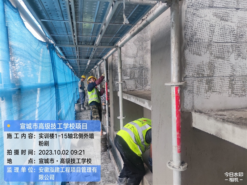 在高級技工學(xué)校項目上,為保證學(xué)校按時開學(xué)招生,施工隊伍正在進(jìn)行墻面粉刷及墻面保溫施工。